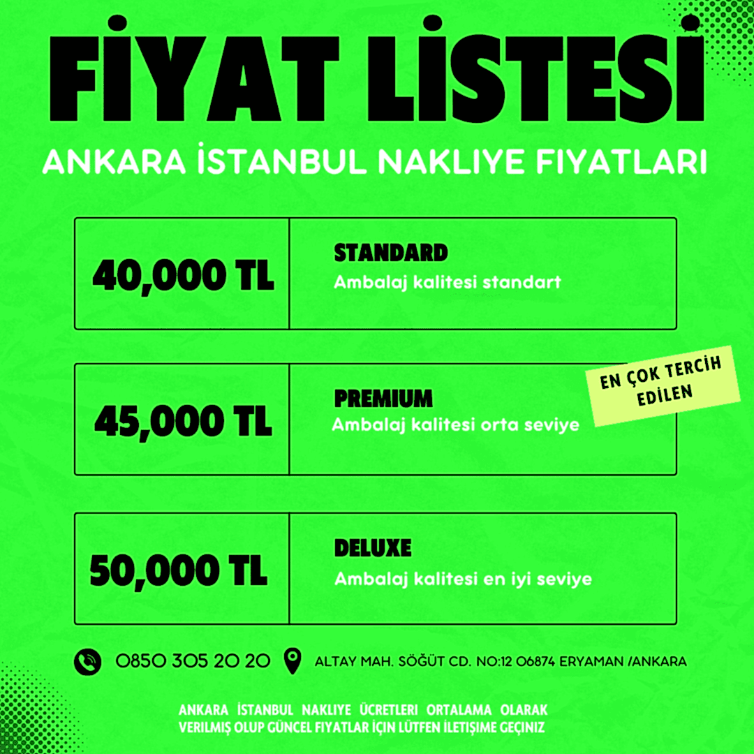 - Ankara İstanbul Nakliye Fiyatları belirlenirken birçok etken dikkate alınır.
